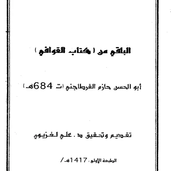 الباقي من كتاب القوافي لأبي الحسن حازم بن محمد القرطاجني PDF من كتب العروض والقوافي التي تشرح أوزان الشعر العربي وبحوره وقواعد القافية والإيقاع.