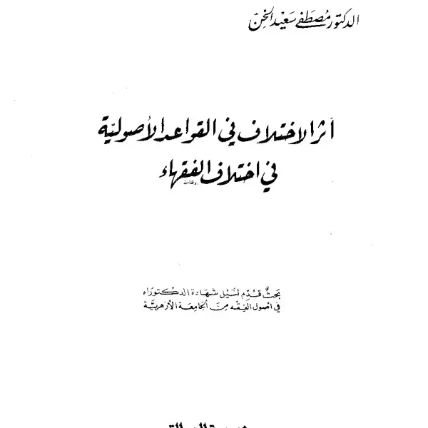 كتاب أثر الاختلاف في القواعد الأصولية في اختلاف الفقهاء لمصطفى سعيد الخن PDF من كتب أصول الفقه التي تُعنى بالقواعد الكلية لاستنباط الأحكام الشرعية وضبط مناهج الاجتهاد.