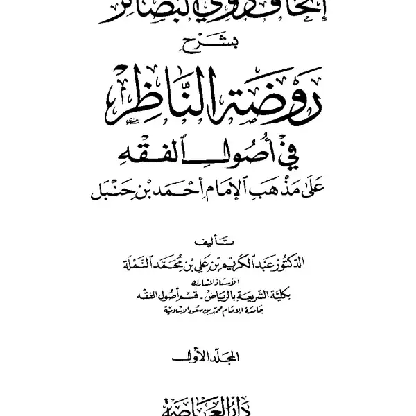 كتاب إتحاف ذوي البصائر بشرح روضة الناظر في أصول الفقه لعبد الكريم بن علي النملة PDF من كتب أصول الفقه التي تُعنى بالقواعد الكلية لاستنباط الأحكام الشرعية وضبط مناهج الاجتهاد.