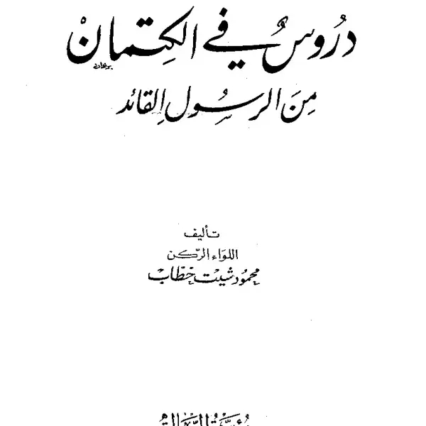 كتاب دروس في الكتمان من الرسول القائد صلى الله عليه وسلم لمحمود شيت خطاب PDF من كتب السيرة النبوية التي توثّق حياة النبي صلى الله عليه وسلم وسيرته ومواقفه الدعوية والجهادية.